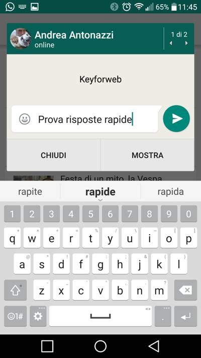 Con il rilascio della nuova beta 2.12.560, scaricabile dal link che troverete in fondo a questo articolo, il team di sviluppo di WhatsApp ha introdotto diverse novità nella versione dedicata al mondo Android del popolare servizio di messaggistica istantaneo, che da oggi consente agli utenti di rispondere in modo rapido ad un messaggio direttamente alla ricezione della notifica e senza necessità di accedere all’applicazione. La risposta rapida è stata abilitata anche nelle notifiche di tipo toast consento così inoltre di rispondere ad un messaggio senza necessità di uscire dall’applicazione in uso.