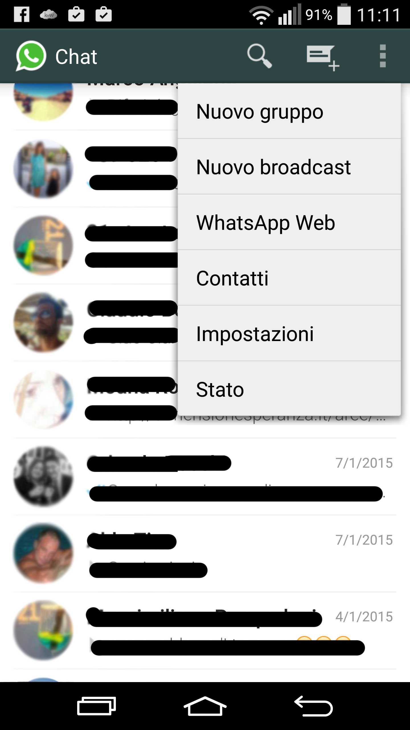 • Aprire WhatsApp sul proprio dispositivo e dal menu principale cliccare su WhatsApp Web; si aprirà un lettore di codici a barre: