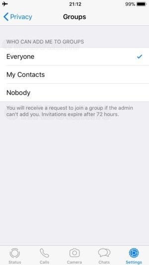 Per abilitare la funzione sarà necessaria andare nelle voci Opzioni > Account > Privacy > Gruppi e selezionare tre possibili opzioni: permettere a tutti di aggiungere a un gruppo, solo ai propri contatti, oppure a nessuno.