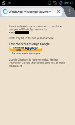 Se anche voi utilizzate Whatsapp per i vostri messaggi, sarete al corrente che entro pochi giorni il servizio diverrà a pagamento al costo di € 0,79 annui. Se avete intenzione di sottoscriverlo, ma non intendete utilizzare, quali che siano le vostre motivazioni, la carta di credito associandola a Google Wallet per pagare l’abbonamento, eccovi la procedura per potere utilizzare l’alternativa con Paypal.