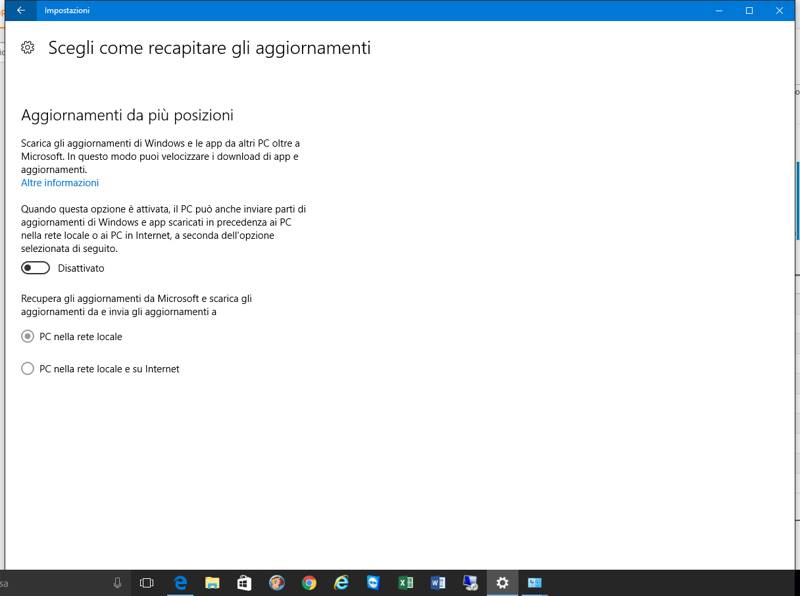 E’ importante ricordare che per quanto riguarda la modalità di download da più PC presenti nella rete locale o su Internet, chi non desidera usufruirne, può disabilitare il tutto accedendo semplicemente in Impostazioni >Aggiornamento e sicurezza > Windows Update > Opzioni Avanzate > Scegli come recapitare gli aggiornamenti.