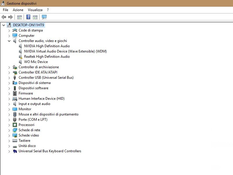 - Vi si aprirà una finestra dove sarà possibile vedere tutte le periferiche presenti nel PC (foto sopra), spostatevi sotto la scheda “Controller audio, video e giochi“;