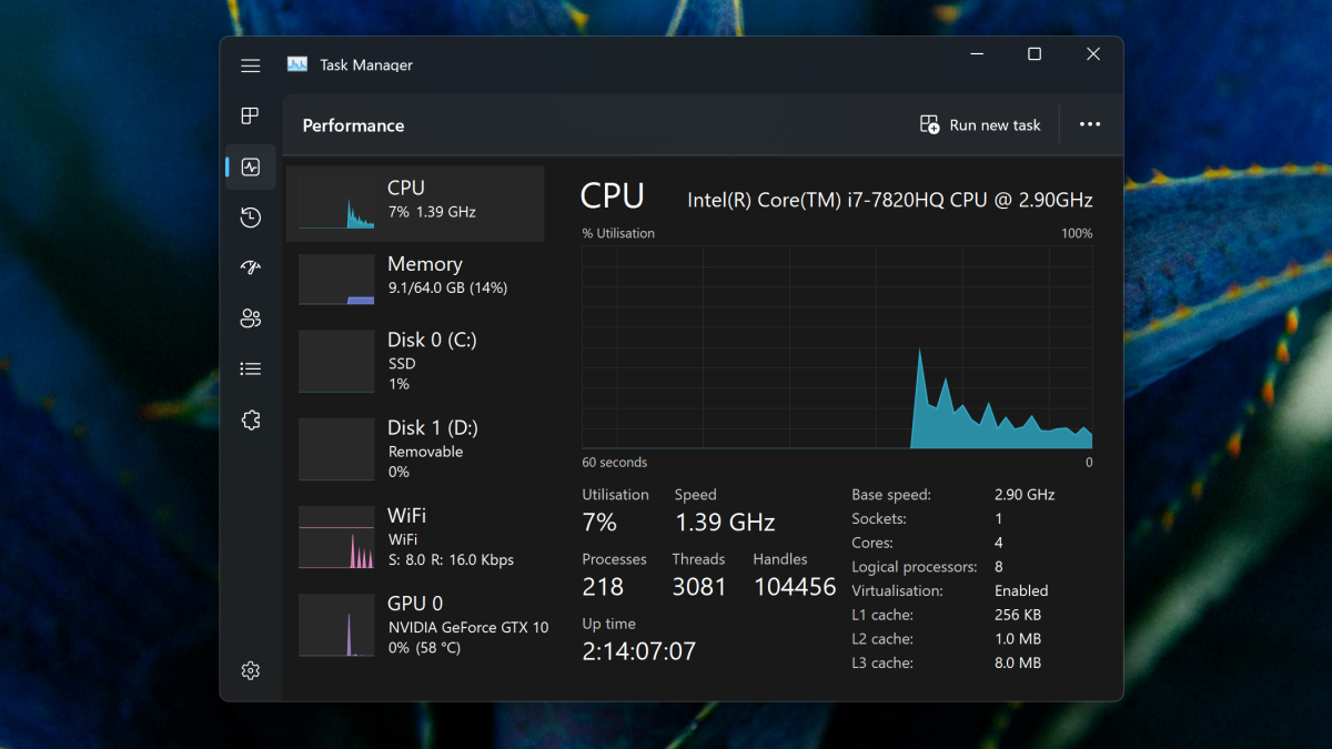 Per la prima volta da Windows 8, Microsoft ha aggiornato l’app Task Manager su Windows 11 con un nuovissimo design che la rende in linea con il resto dell’interfaccia di Windows 11. È dotato di nuovi effetti sfocatura, un nuovo menu che ospita tutte le diverse schede di Task Manager e utilizza persino il colore del sistema per evidenziare gli elementi salienti.