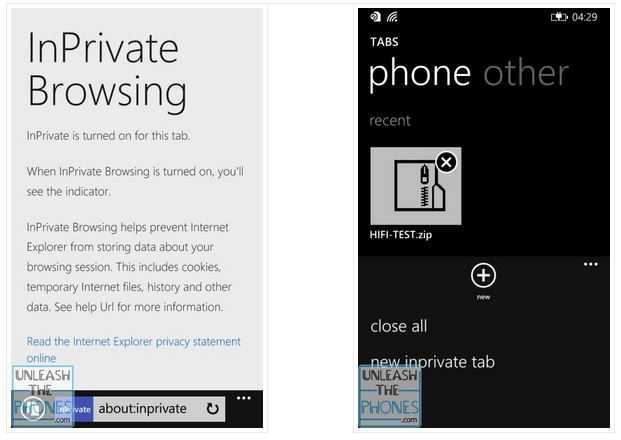 Altra caratteristica implementata è la navigazione in modalità anonima. Impostando la modalità “InPrivate Browsing”, come sulla controparte Windows di Internet Explorer, sarà possibile “navigare” sul dispositivo in privato, senza lasciare tracce sul device dei dati di navigazione memorizzati nella cache del browser.