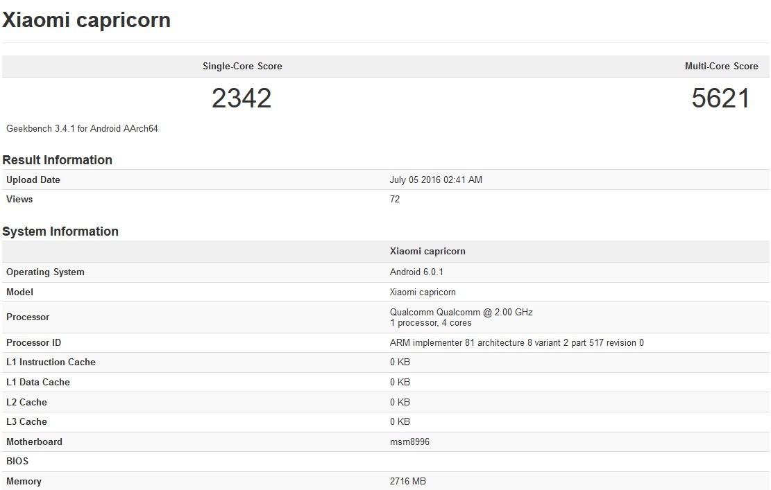 Come risaputo, Geekbench non ci offre molti dettagli sui dispositivi testati ma di Xiaomi Altun sappiamo che verrà alimentato da una CPU octa-core accompagnata da 2 GB di memoria RAM e che Android 6.0 costituirà il sistema operativo a bordo. Lo smartphone in questione è stato testato diverse volte, da qualche mese a questa parte, ma in tutte queste il chipset non è stato identificato.