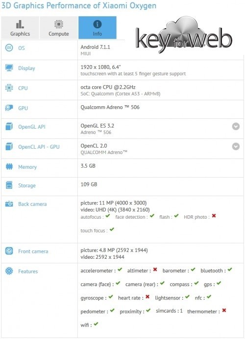 Grazie a GFXBench ecco quindi tutte quelle che dovrebbero essere le specifiche tecniche del dispositivo. Partendo dallo schermo Xiaomi Mi Max 2 avrà una diagonale di ben 6,44″ per una risoluzione Full HD. Il processore invece dovrebbe essere un Qualcomm Snapdragon 635 di fascia media: non sarà di certo potentissimo come l’ultimo Snapdragon 835, ma parliamo pur sempre di un chip molto valido. La memoria RAM dovrebbe invece essere pari a 4GB.