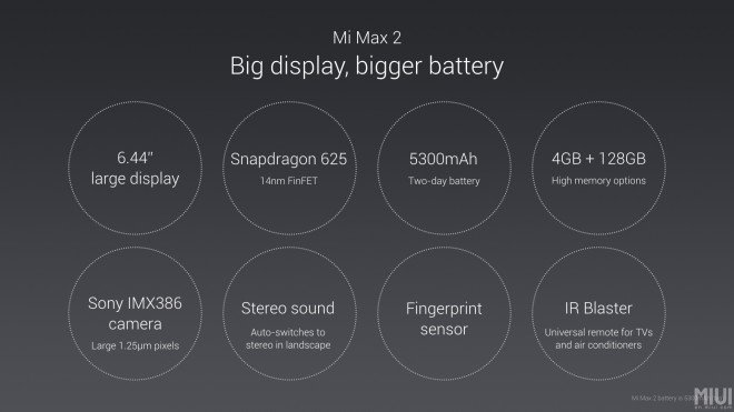 Insomma, nessuno stravolgimento ma una strategia volta a metter in evidenza un prodotto che punta ad ingolosire gli <<irriducibili>> dell’autonomia, anche a costo di sacrificare portabilità e dimensioni (174,1 x 88,7 x 7,6 millimetri con peso di ben 211 grammi): il produttore cinese promette infatti due giorni pieni di ricarica, con ben 21 ore di navigazione, 18 ore di riproduzione video, 9 ore di gaming e 57 ore di chiamate. Xiaomi Mi Max 2 sarà commercializzato in Cina ad un prezzo equivalente di 220 euro nella versione da 4GB RAM e 64GB di storage e 259 euro per quella con a bordo 128GB di spazio di archiviazione interno.