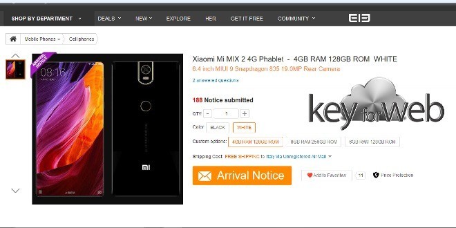 Il dispositivo di casa Xiaomi in arrivo ha già la sua pagina di vendita all’interno di GearBest, dove sono state elencate le sue principali specifiche tecniche, assieme ad un’immagine provvisoria che probabilmente non riporta il vero design dello smartphone in arrivo, dato che dovrebbe essere il primo dispositivo dell’azienda cinese praticamente borderless, ovvero con cornici sottilissime ed un display utilizzabile al 90% della sua superficie. Ad ogni modo, per quanto riguarda la lista delle specifiche, è più che probabile che quest’ultime possano essere state rilasciate da qualche fonte interna all’azienda, dunque dovrebbero risultare piuttosto attendibili.
