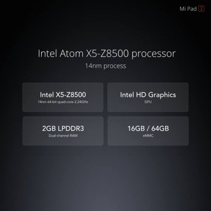 - Intel Atom processor (14nm process), Quad-core X5-Z8500, 2.24GHz