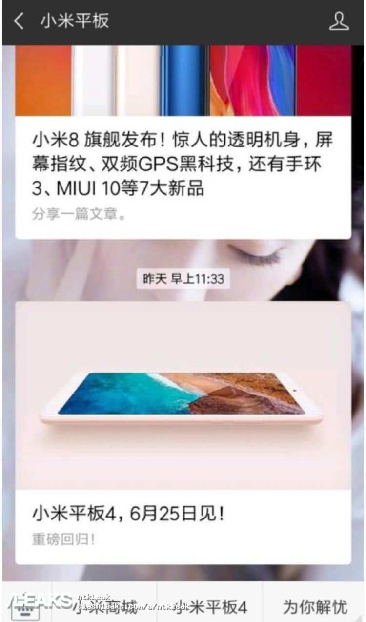 Il 25 giugno è prevista la presentazione di un paio di nuovi dispositivi Xiaomi, tra cui il Redmi 6 Pro e lo Xiaomi Mi Pad 4. Proprio come annunciato in precedenza il dispositivo è veramente molto atteso e tutti non vediamo l’ora di vederlo dal vivo. Su Weibo emerse oggi un paio di nuove foto che mostrano interamente il prodotto.