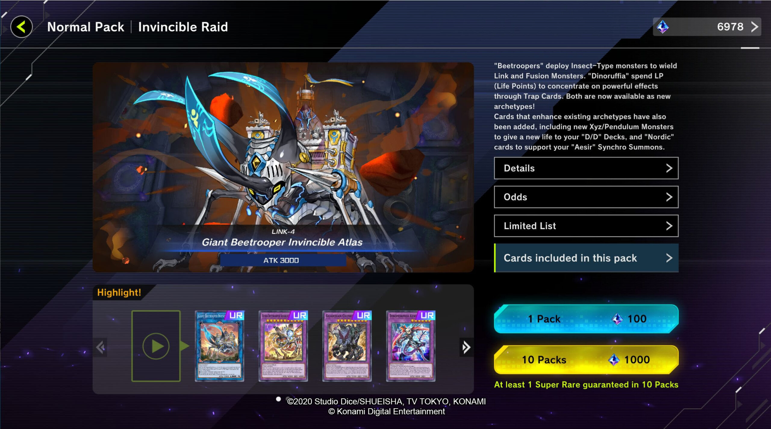 L’aggiornamento di oggi introduce anche il nuovo Gate “Gli Invincibili Scarasoldati” e il nuovo Selection Pack “Raid Invincibile”. Entrambi disponibili per la modalità single player, i pacchetti sono basati sui mostri Scarasoldato Scout Buggy che fanno il loro debutto in Yu-Gi-Oh! MASTER DUEL.